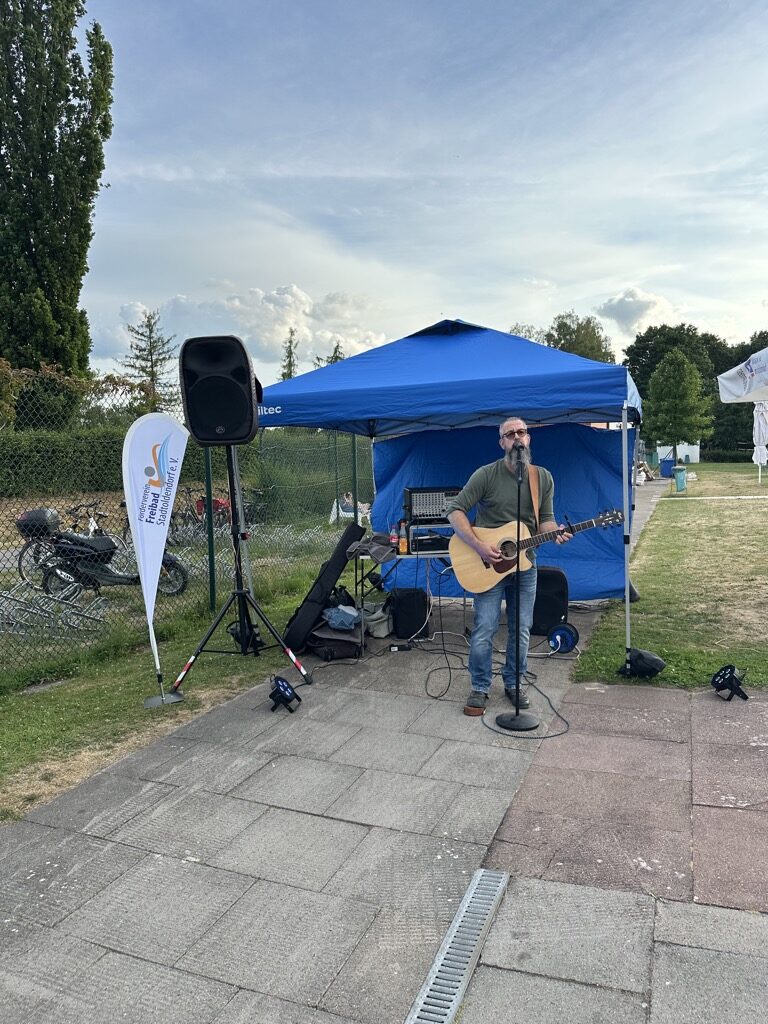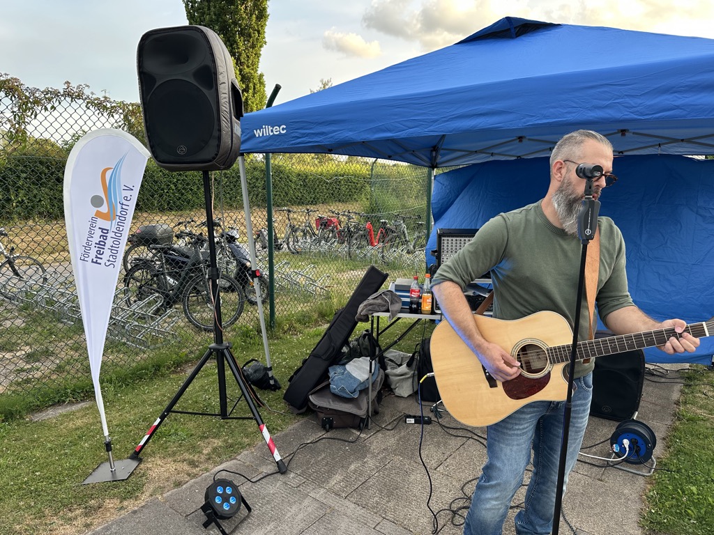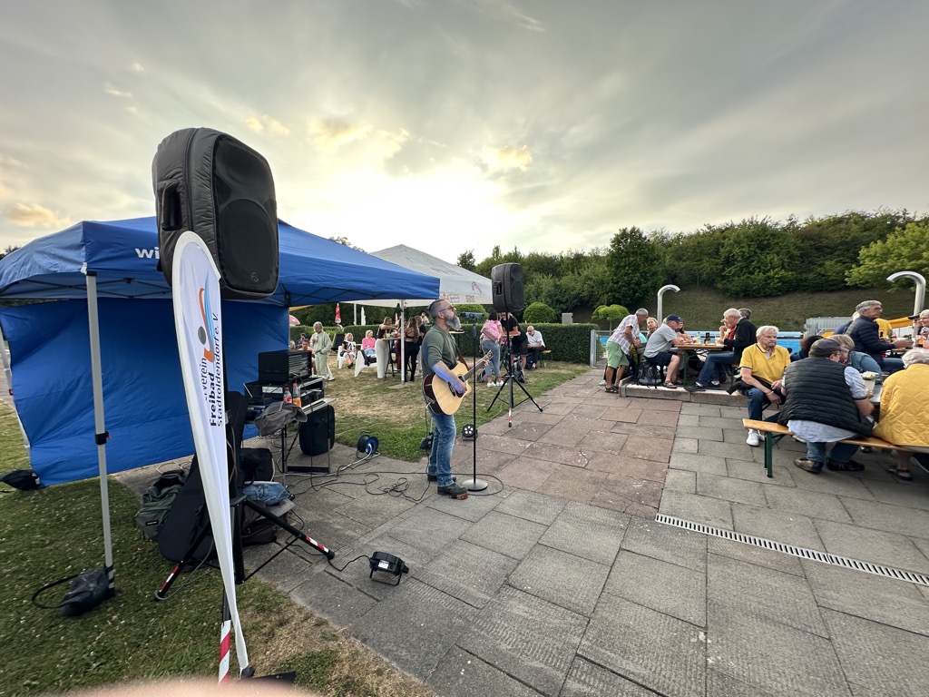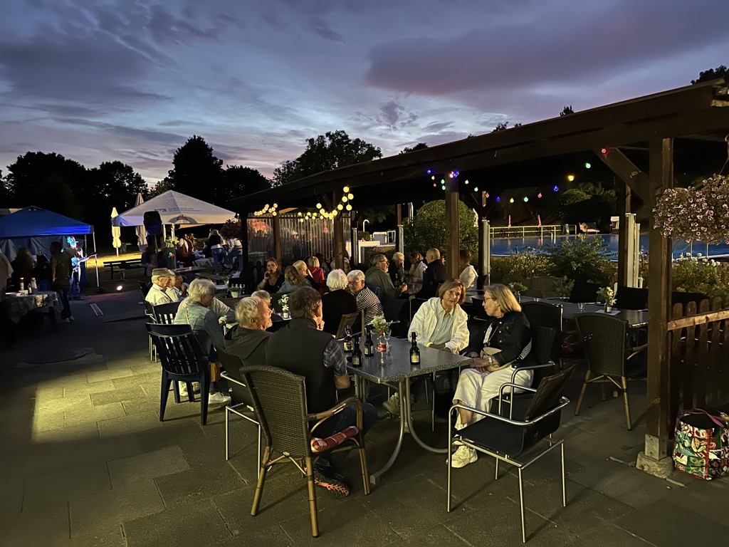 Der Förderverein hatte zum 11.07. zum Vollmondschwimmen eingeladen – und über 170 Schwimm- und Freibadfreunde sind der Einladung gefolgt! Es war ein großartiges Fest, dass an die Erfolge aus den Vorjahren ankünften konnte. Ron Phillips machte großartige Musik für alle Altersklassen und hat sich zwischen 20:00 Uhr, dem Beginn des Festes, bis 23:00 Uhr keine Pause gegönnt! Sunny, unser Kioskbetreiber, hat in bewährter Form für das leibliche Wohl gesorgt und Irmi (Ohrmann-Mangels) und Karin (Küster) hatten an der Cocktailbar alle Hände voll zu tun. Es blieb der einheitliche Wunsch: das sollten wir im nächsten Jahr wiederholen! Hier ein paar Schnappschüsse – sie sprechen für sich!