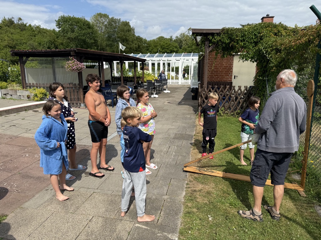Am Mittwoch, 03.07.2024, fand im Freibad Stadtoldendorf die diesjährige Ferienpass-Aktion „Spielenachmittag im Freibad“ statt und trotz der schlechten Wetterprognose kamen doch 7 Kinder und waren mit Feuereifer dabei.