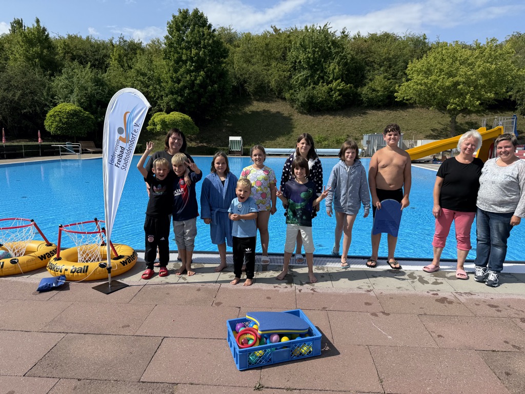 Auch in diesem Jahr hat sich der Förderverein wieder an der Ferienpass-Aktion der Stadt beteiligt. Die teilnehmenden Kinder hatten sichtlich viel Spaß, im Wasser und außerhalb des Wassers. Birgit Anders hat